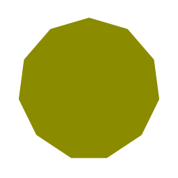 A flat, solid olive green hendecagon shape.