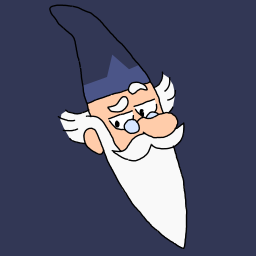A cartoon illustration of an old wizard with a long white beard and a blue hat.