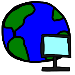 A hand-drawn sketch of a computer monitor in front of a globe, representing a network.