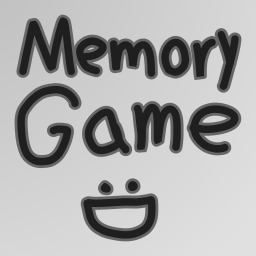 A minimalist icon featuring handwritten text "Memory Game :D" in black over a gray background.